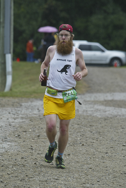 We were a bit behind schedule, he came in for his third lap a bit slower than planned and we ended up taking about half hour longer than the goal was. He was struggling, and would ultimate take a nap and end up not finishing. But I had a half marathon to run in 2 hours! Soaked to the bone, I tried to get a little sleep. That half was wild. The rain had stopped but the muddy trails had been so chopped up by the hundreds of trampling runners that there was no solid footing. A sloppy great time!